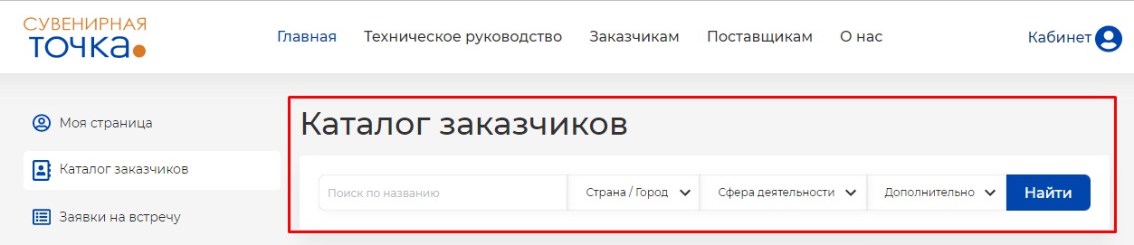 В пункте меню "Каталог" выбираете интересующие вас компании. Поиск работает по названию компании и по таким параметрам, как Страна/город, Сфера деятельности, Тираж, Стоимость, Брендирование.